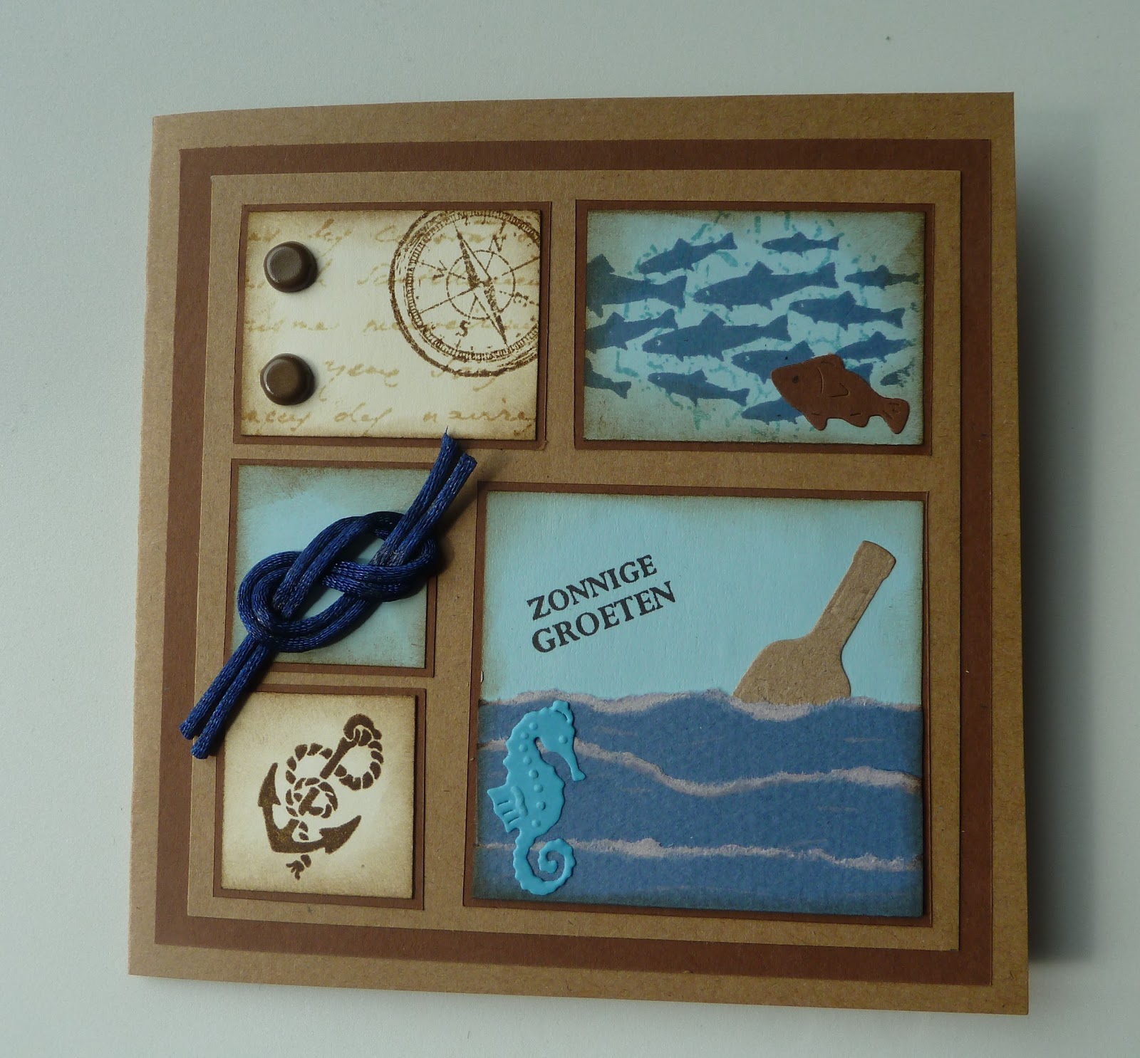 Een beetje stempelen, uitstansen, scheuren, met distress bewerken, een knoop leggen en alles samen op een kaart brengen.